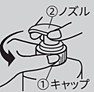 | как открыть | ● Закрепите колпачок (1) рукой и поверните сопло (2) в направлении стрелки (против часовой стрелки) . ●Нажмите несколько раз, пока не пойдет жидкость. ![]() |